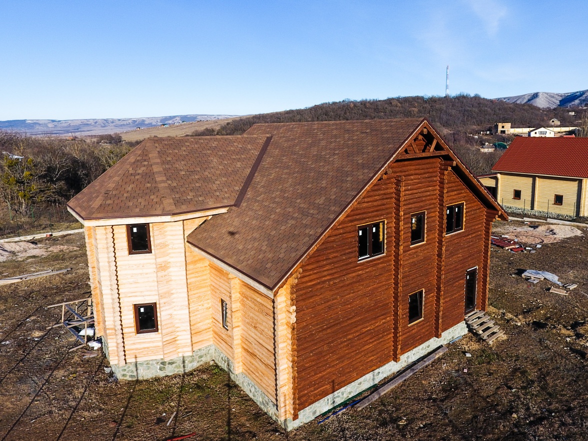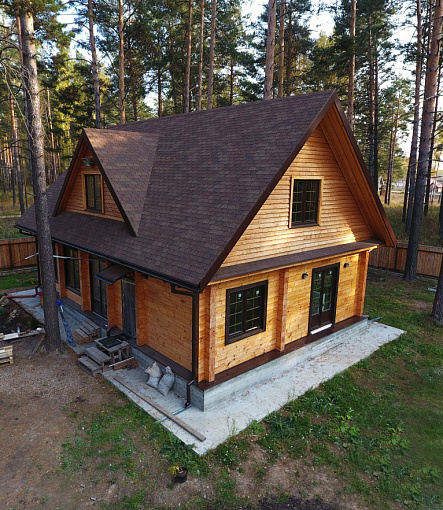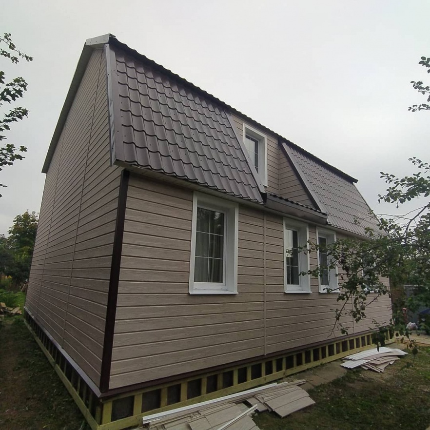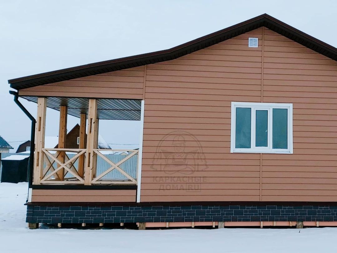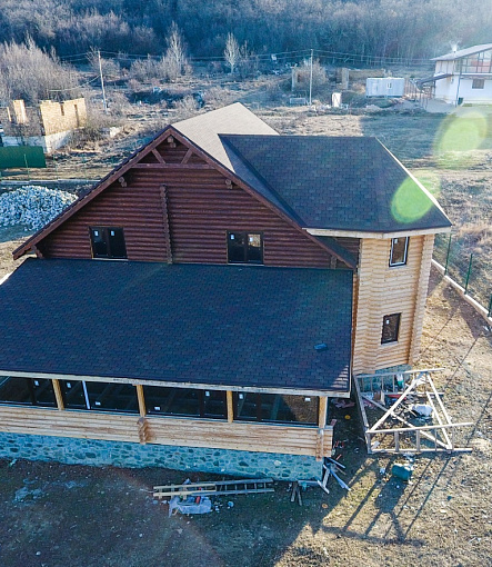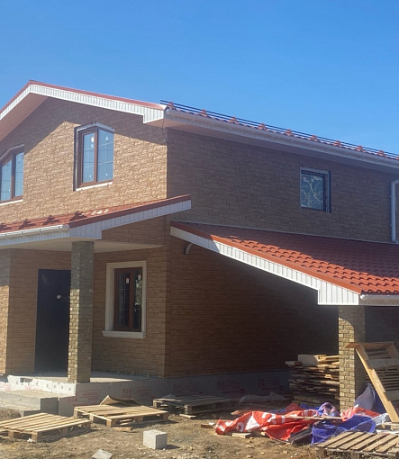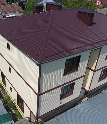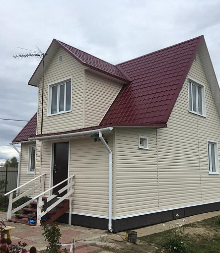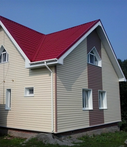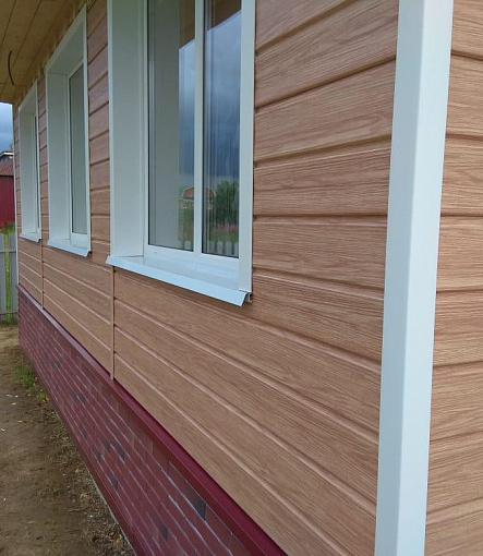 Сайдинг, серия LUX, тип Брус D6S, цвет Рябина и цоколь Флемиш красный жжёный