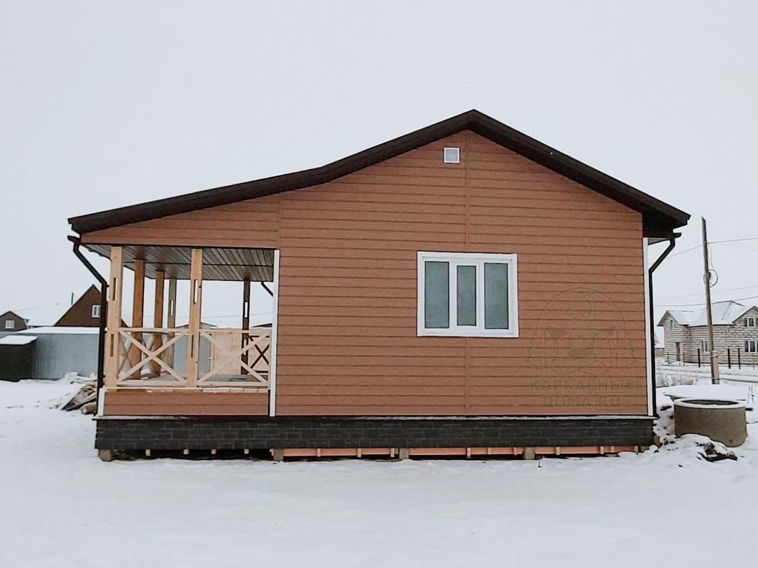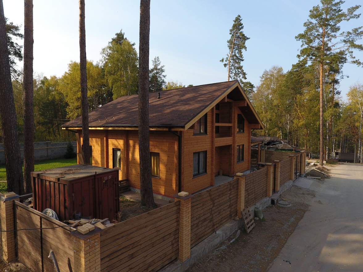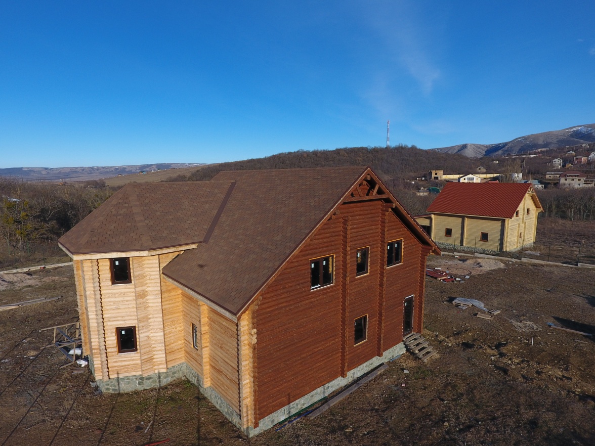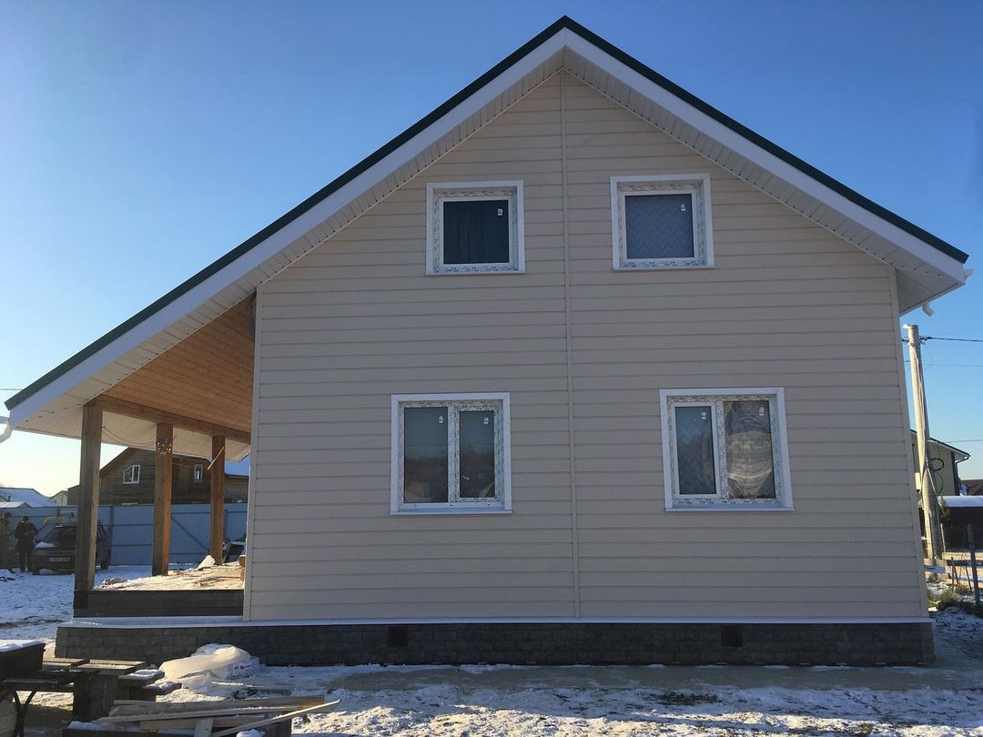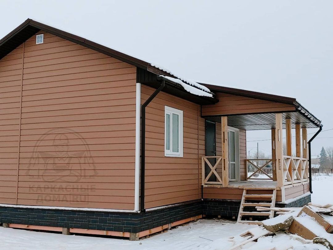 Сайдинг, серия LUX, тип Брус D6S, цвет Рябина и цоколь Флемиш красный жжёный