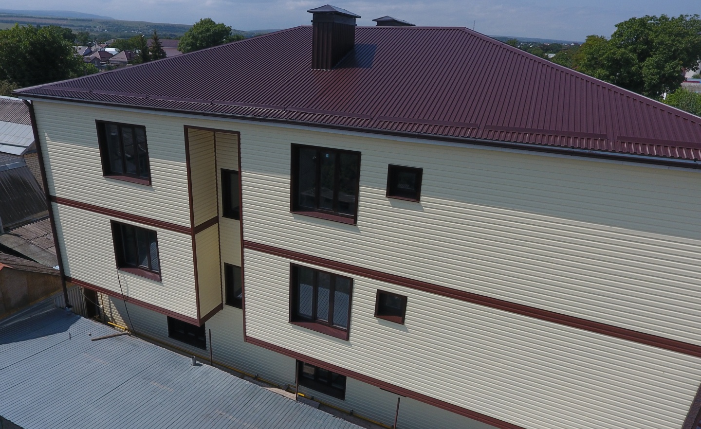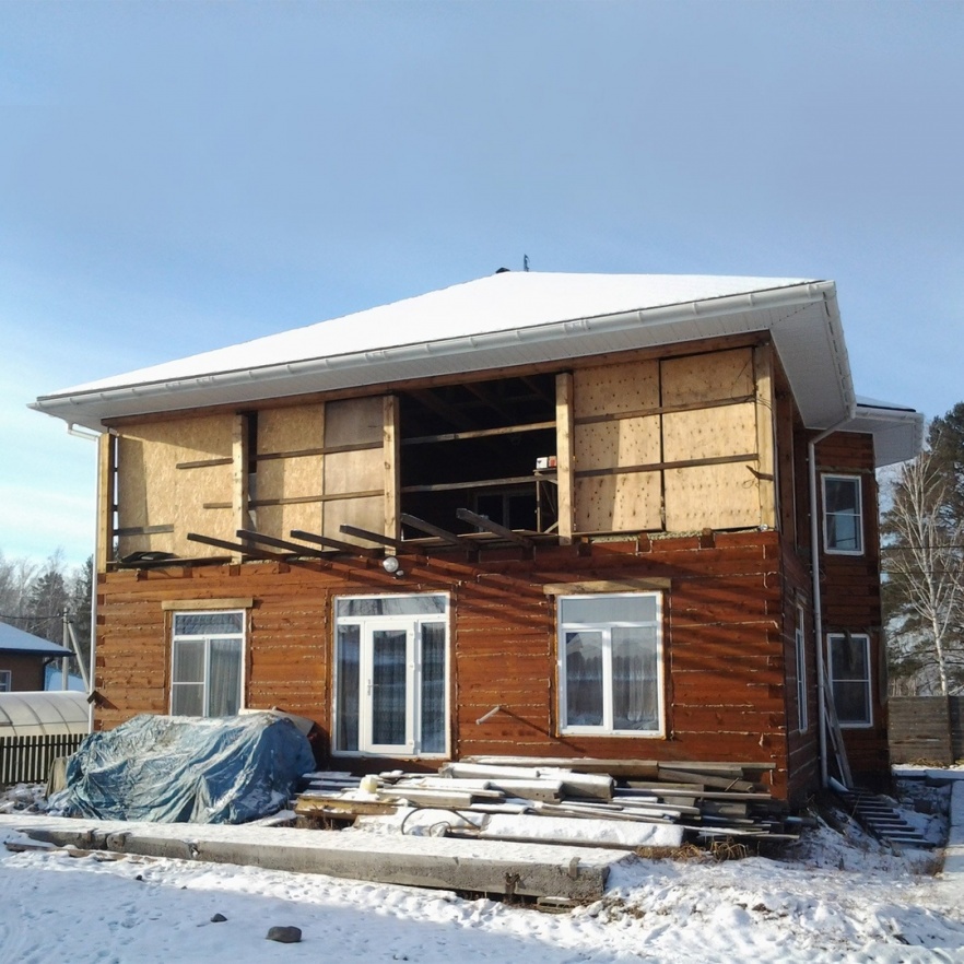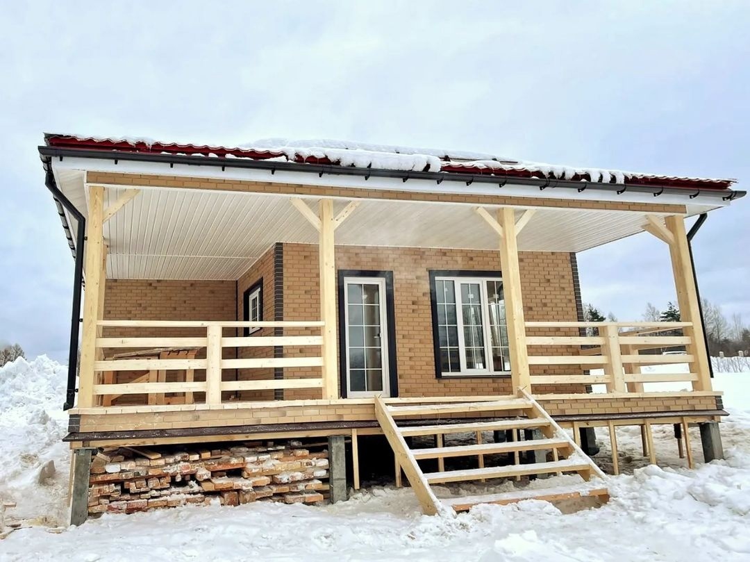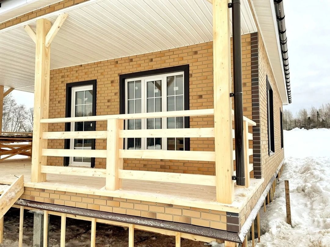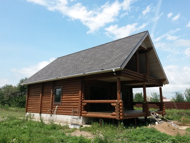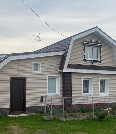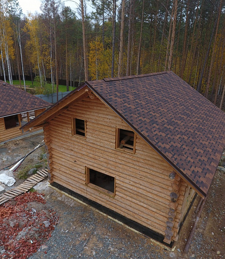 Сайдинг, серия LUX, тип Брус D6S, цвет Рябина и цоколь Флемиш красный жжёный