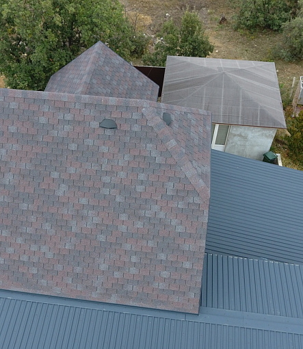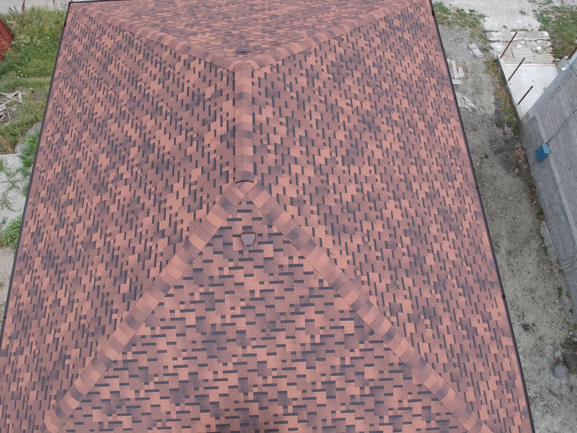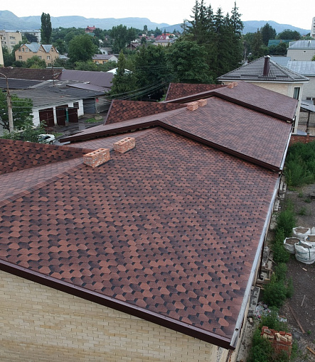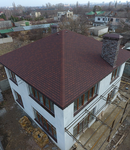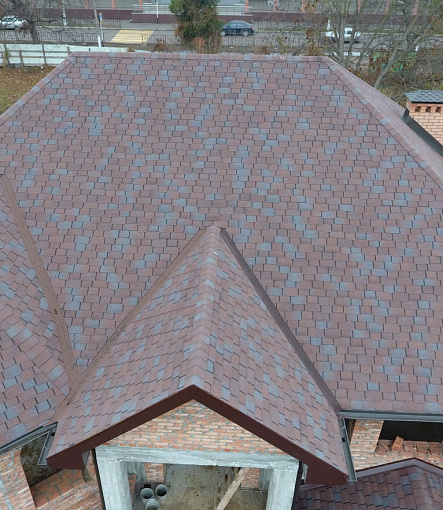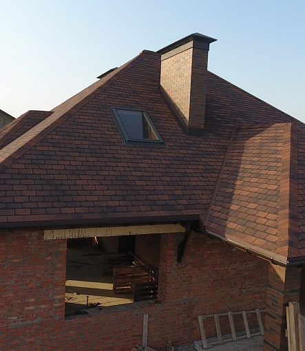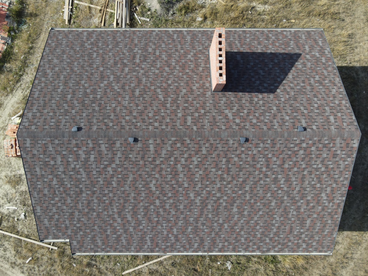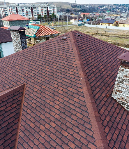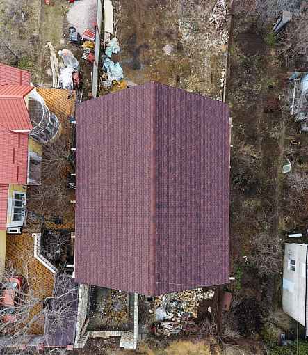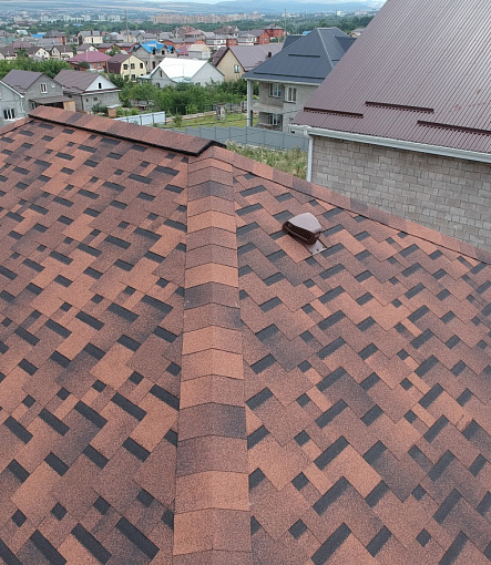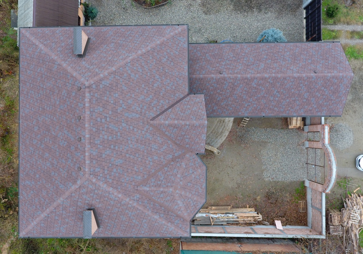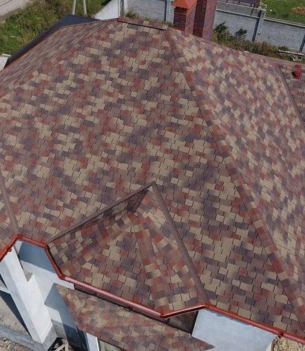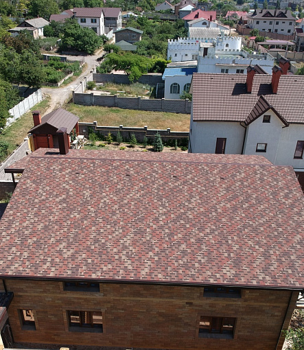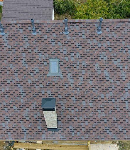 Комбинация гонтов гибкой черепицы серии PREMIUM из коллекции ЖЕНЕВА, цветов Изюм и Чили