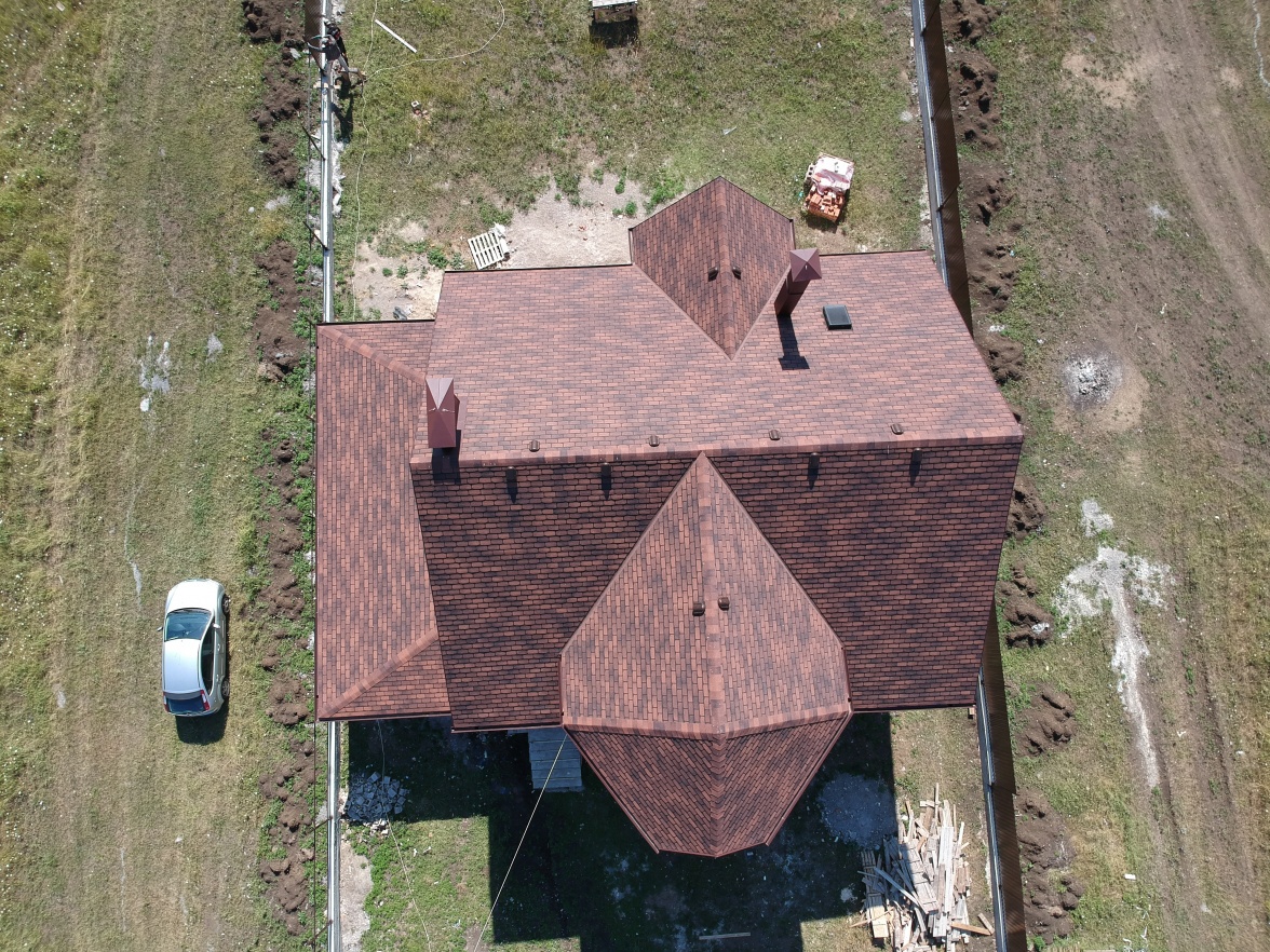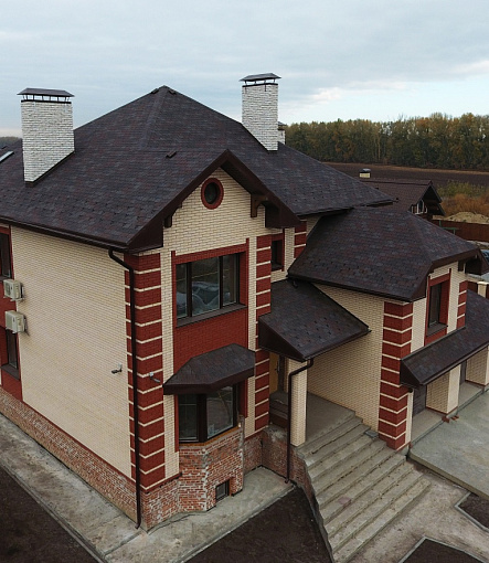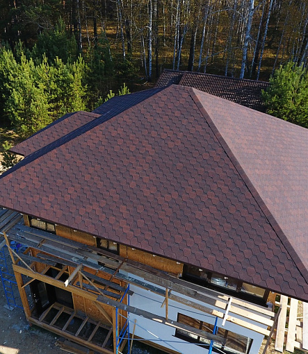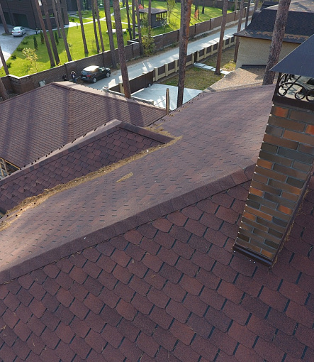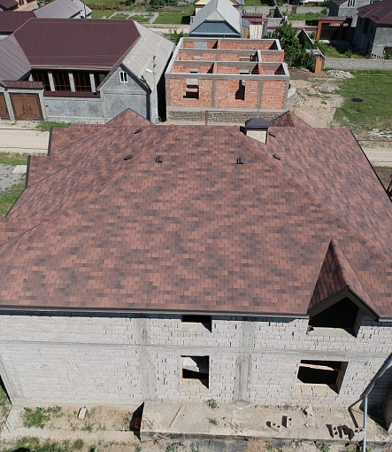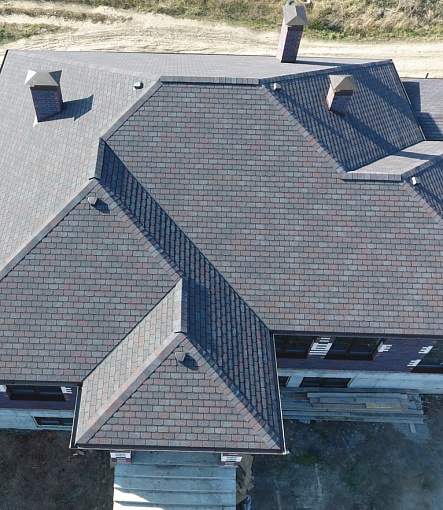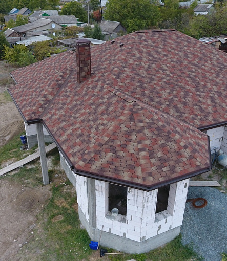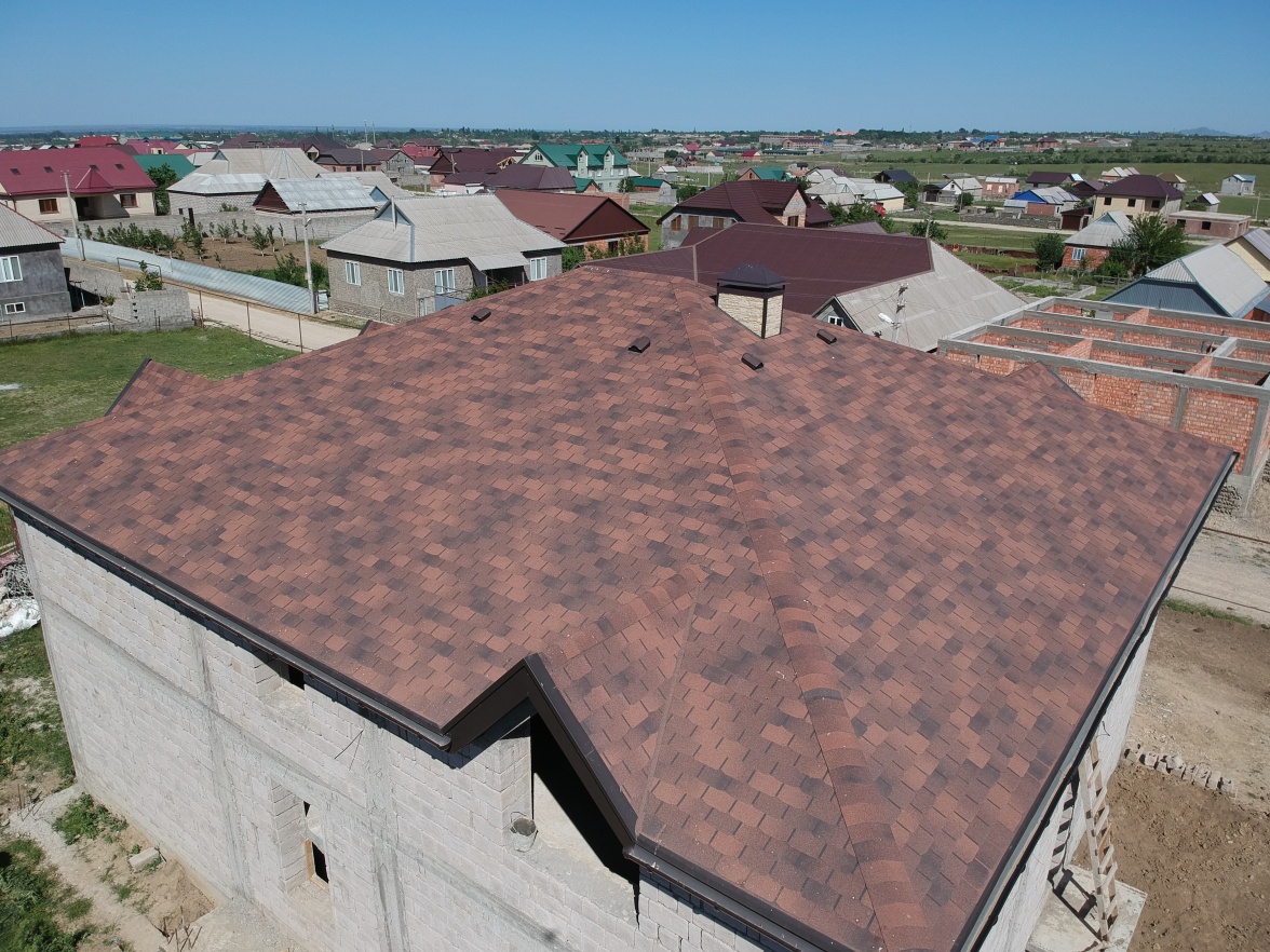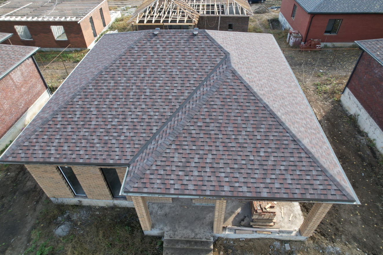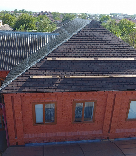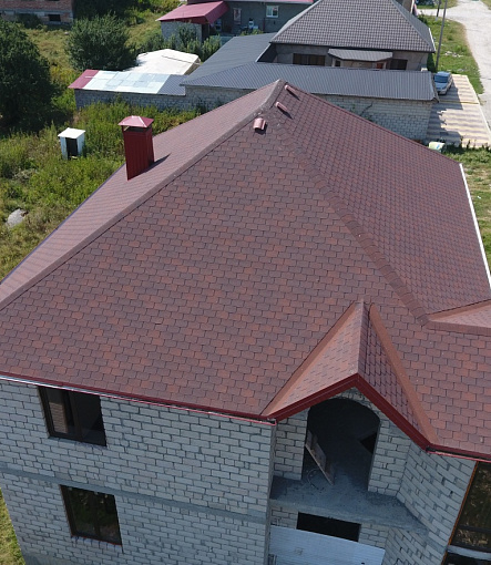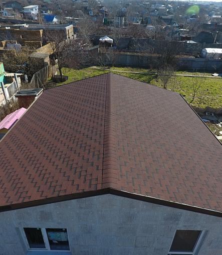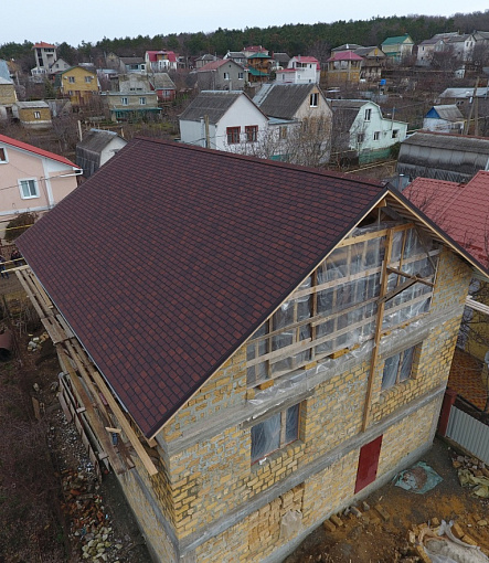 Комбинация гонтов гибкой черепицы серии PREMIUM из коллекции ЖЕНЕВА, цветов Изюм и Чили