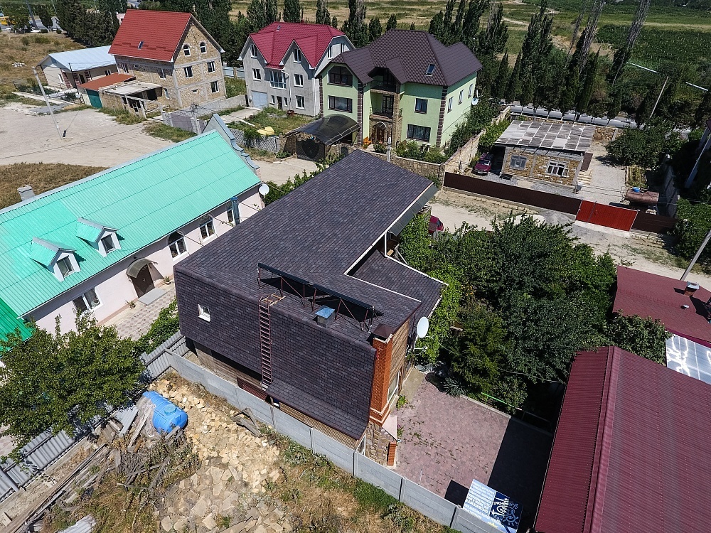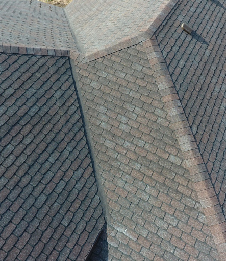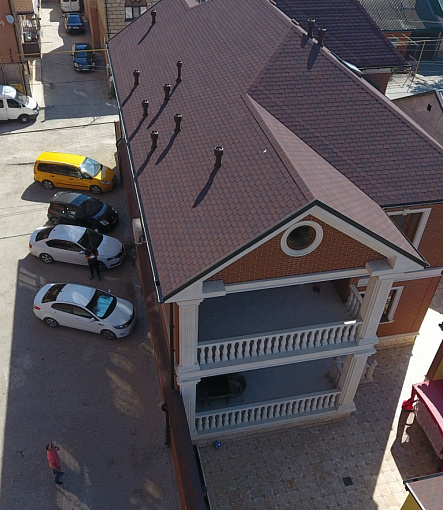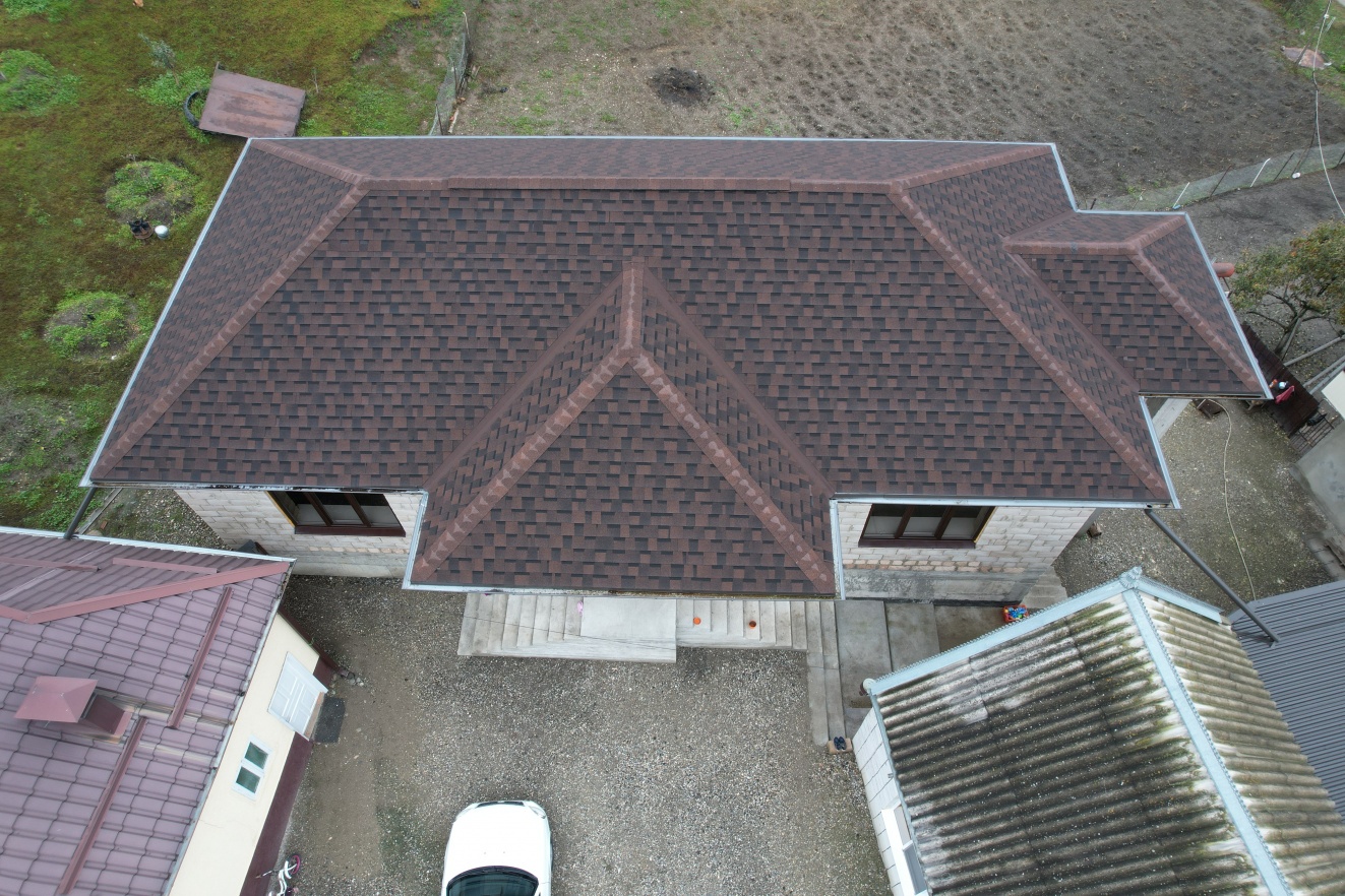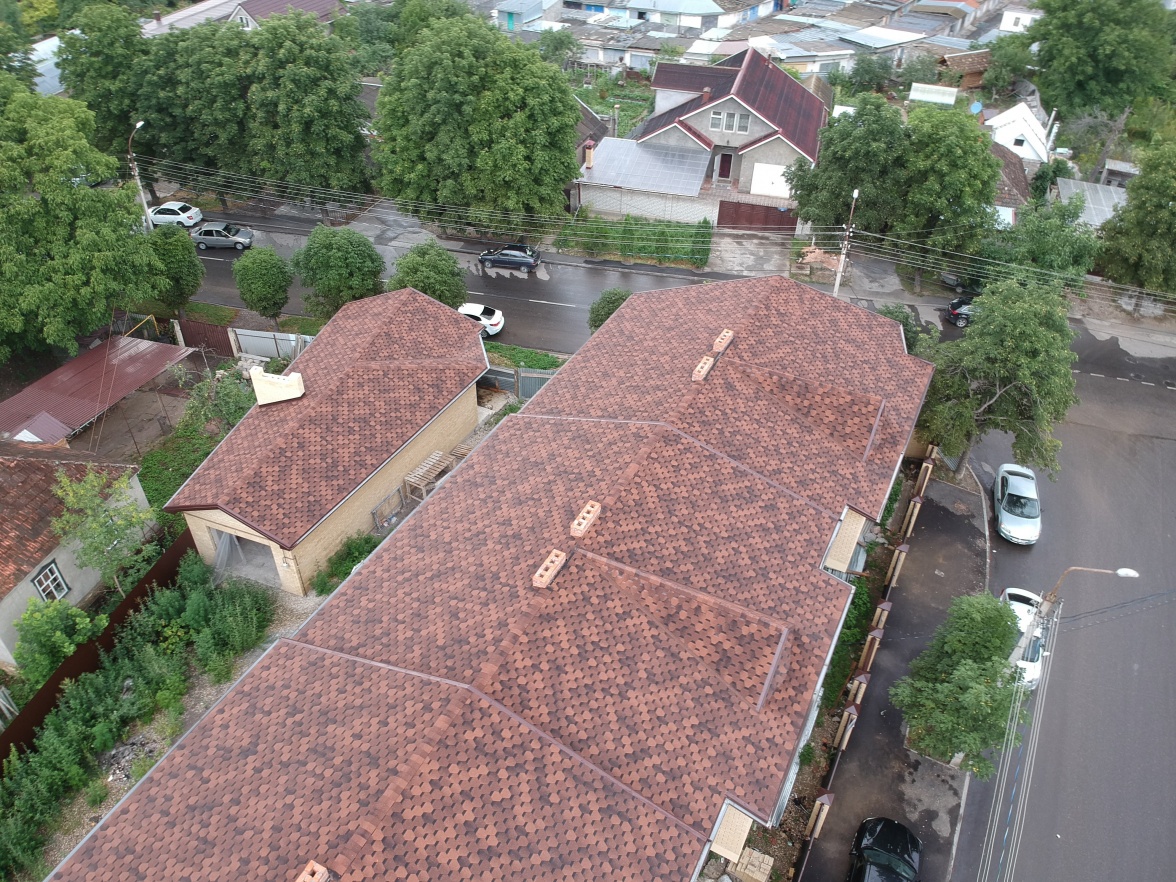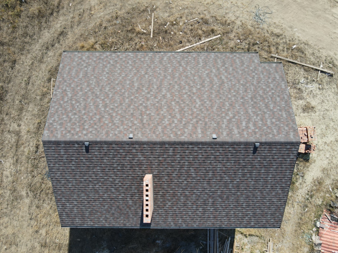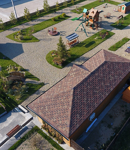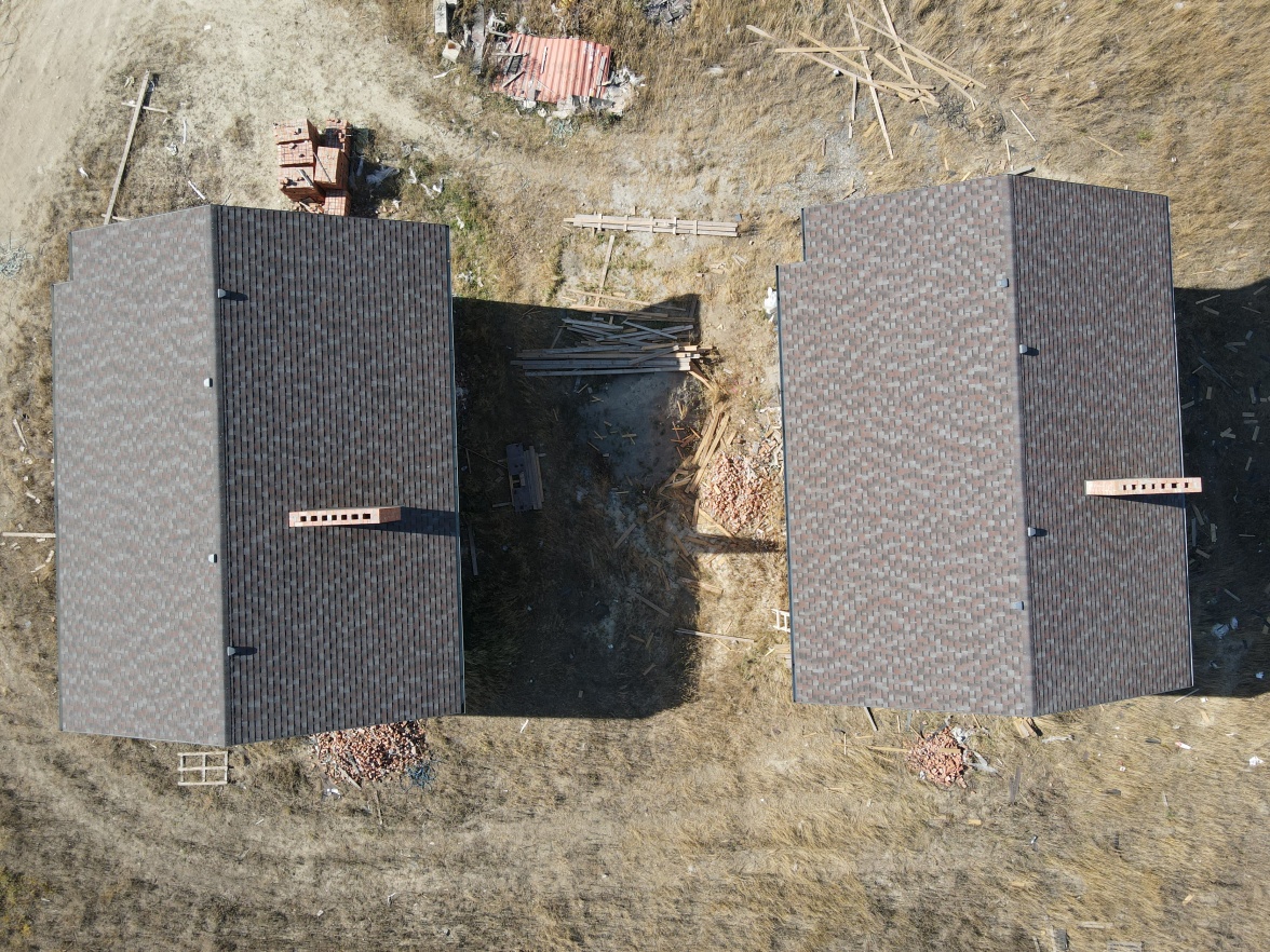 Комбинация гонтов гибкой черепицы серии PREMIUM из коллекции ЖЕНЕВА, цветов Изюм и Чили