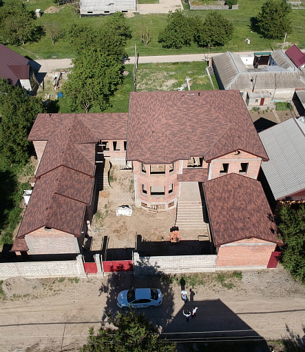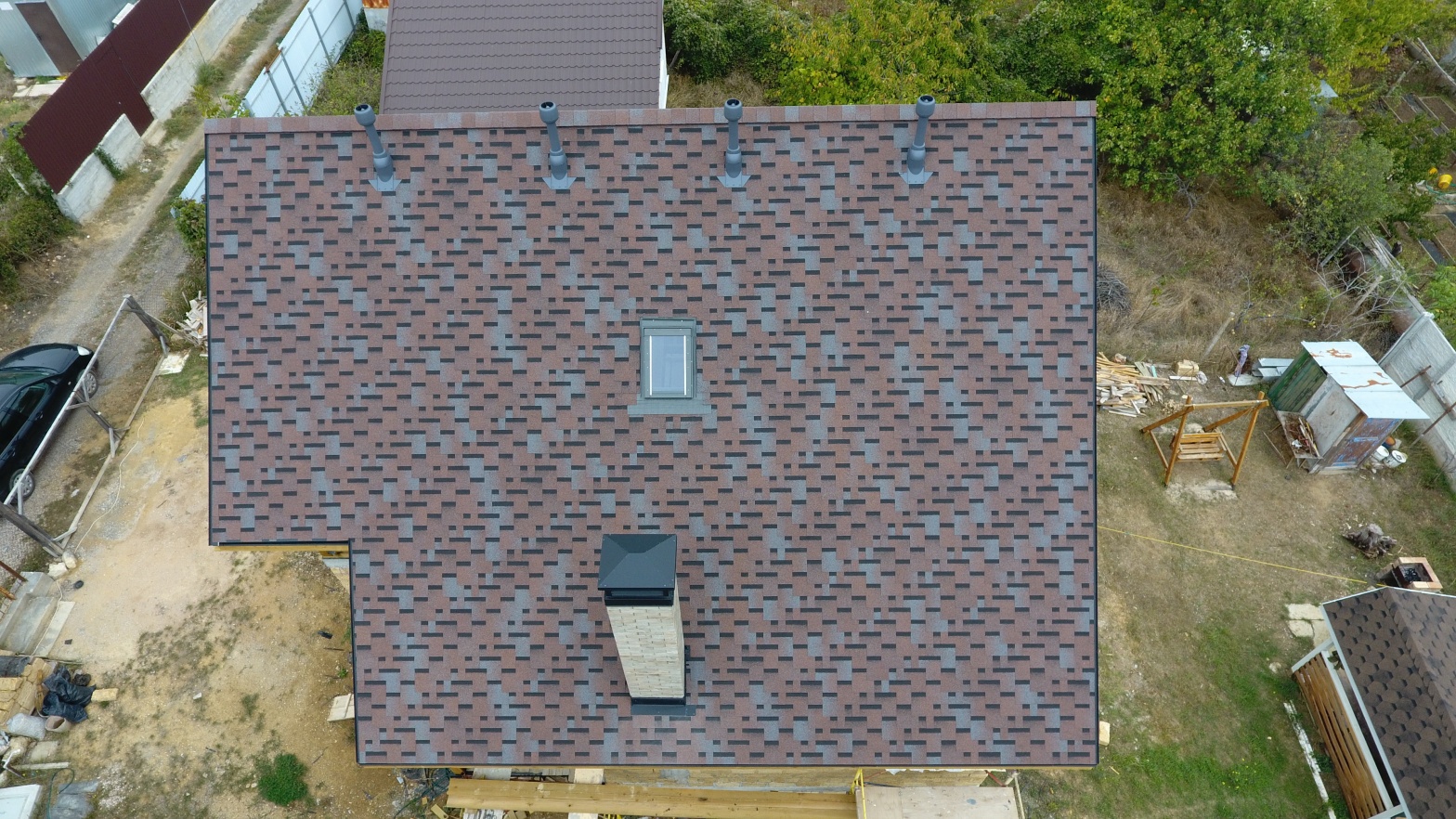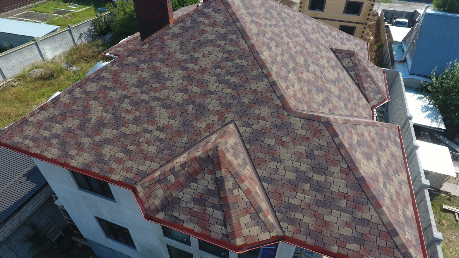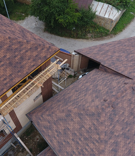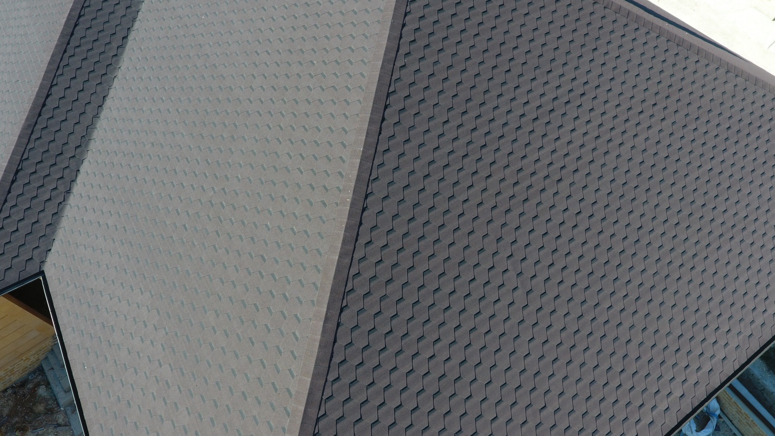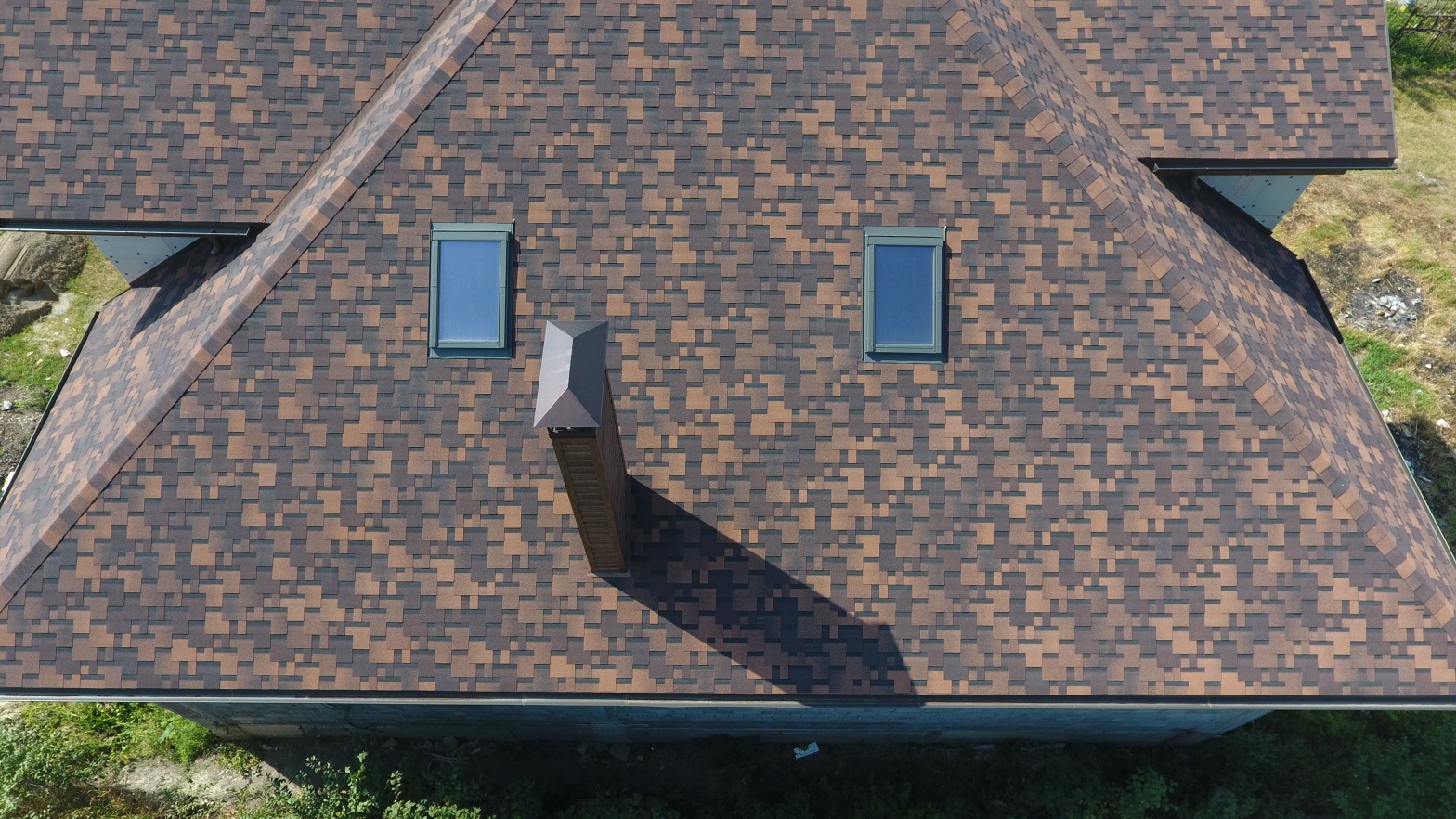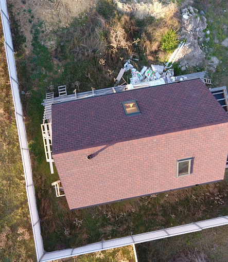 Комбинация гонтов гибкой черепицы серии PREMIUM из коллекции ЖЕНЕВА, цветов Изюм и Чили
