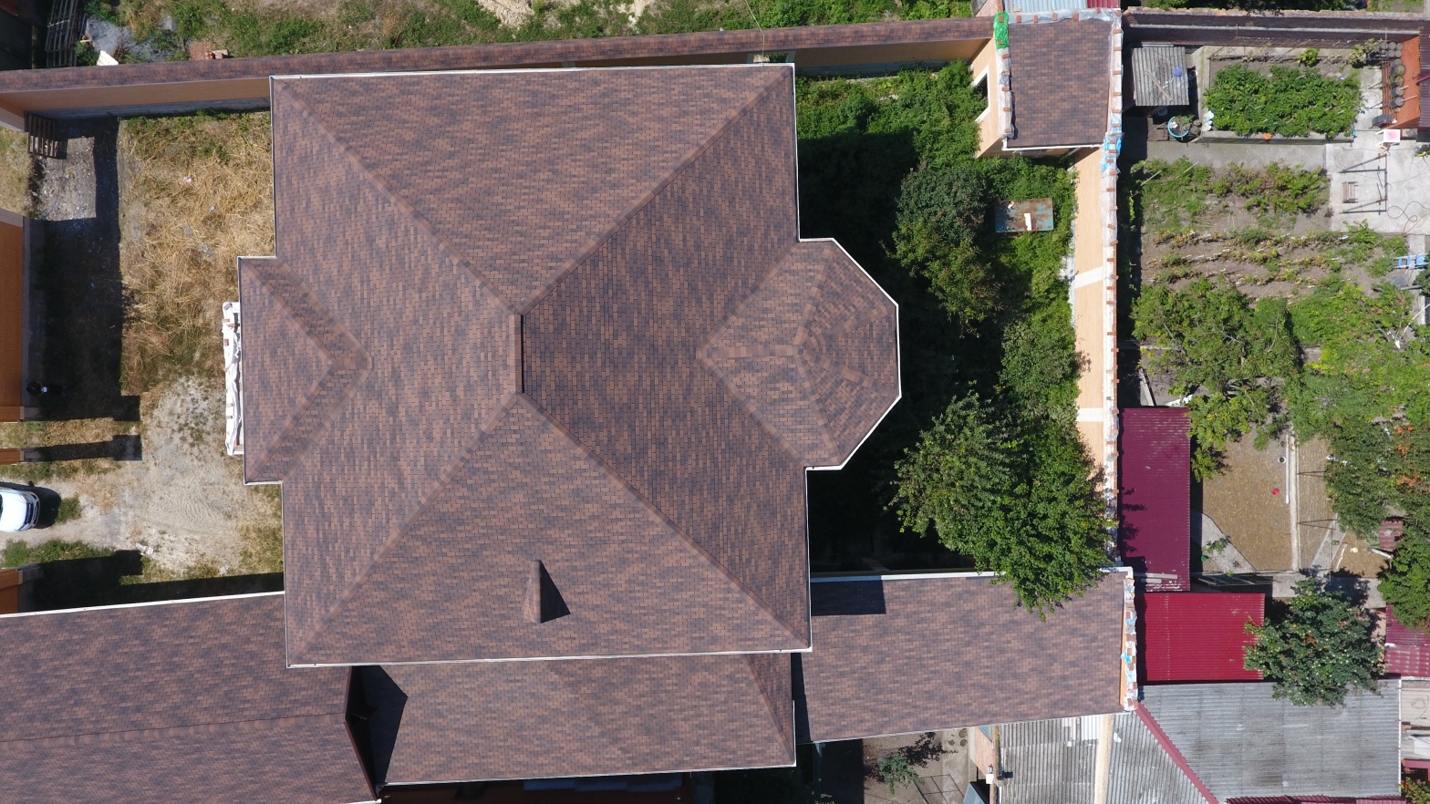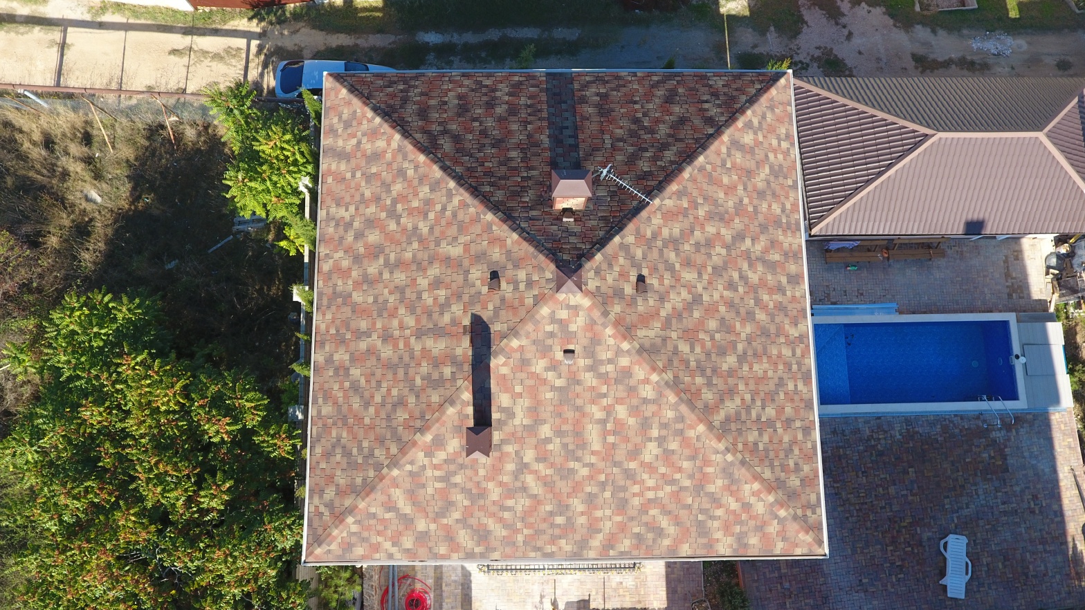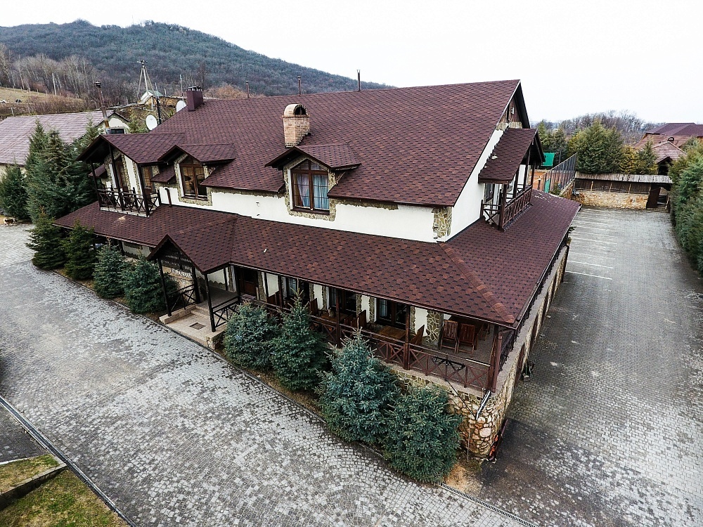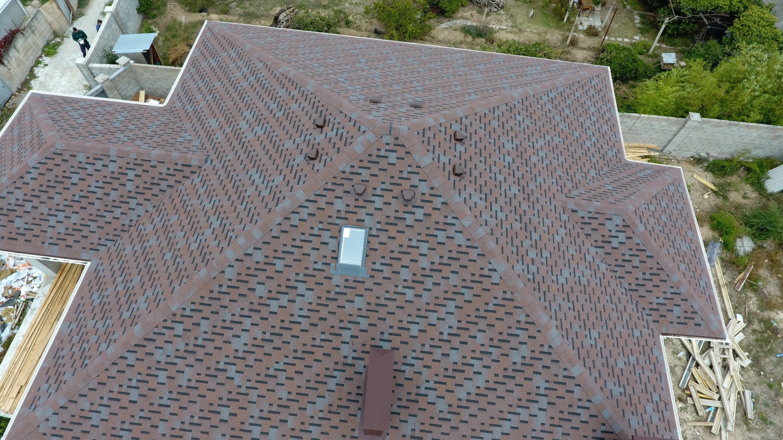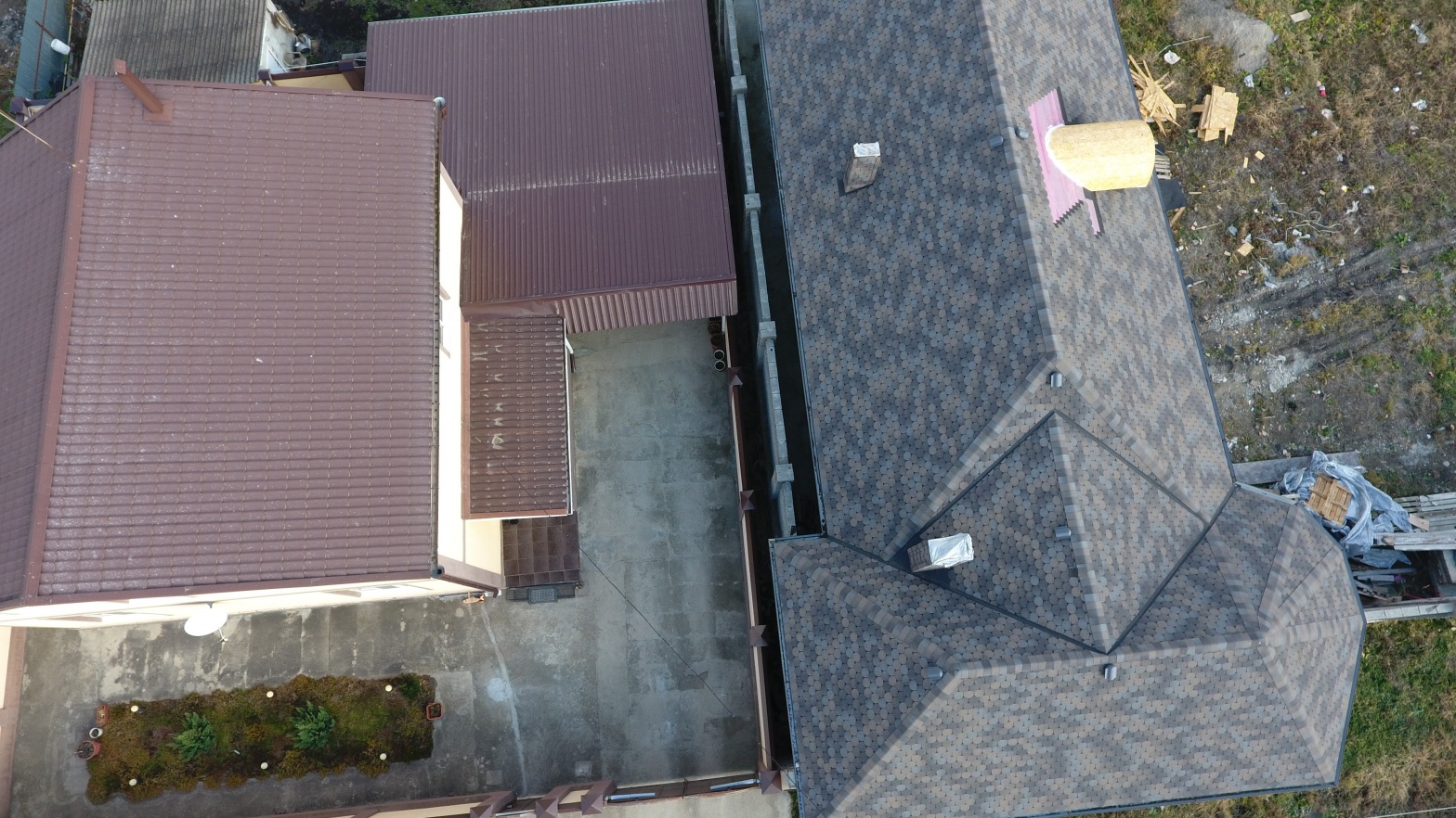 Комбинация гонтов гибкой черепицы серии PREMIUM из коллекции ЖЕНЕВА, цветов Изюм и Чили