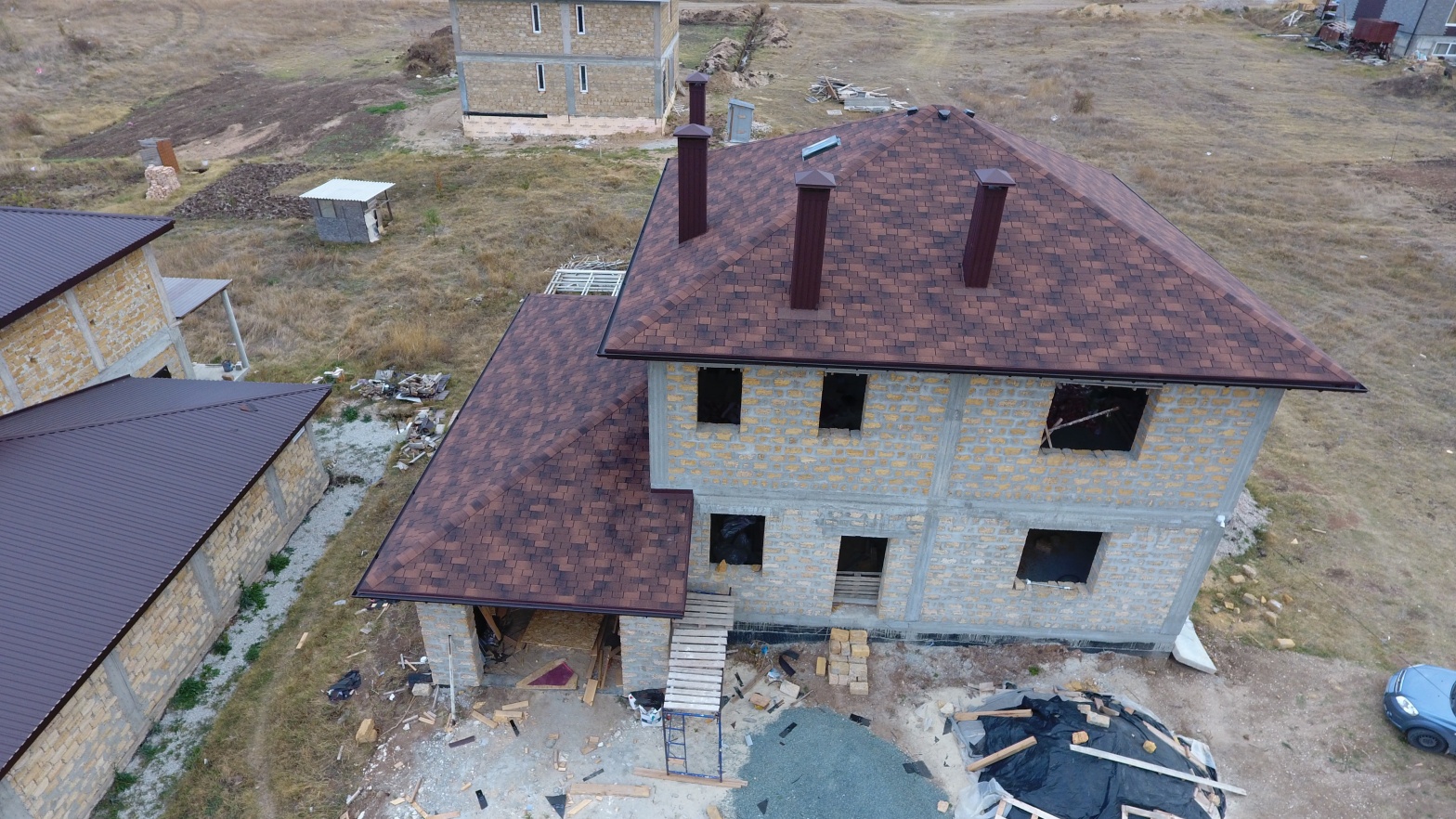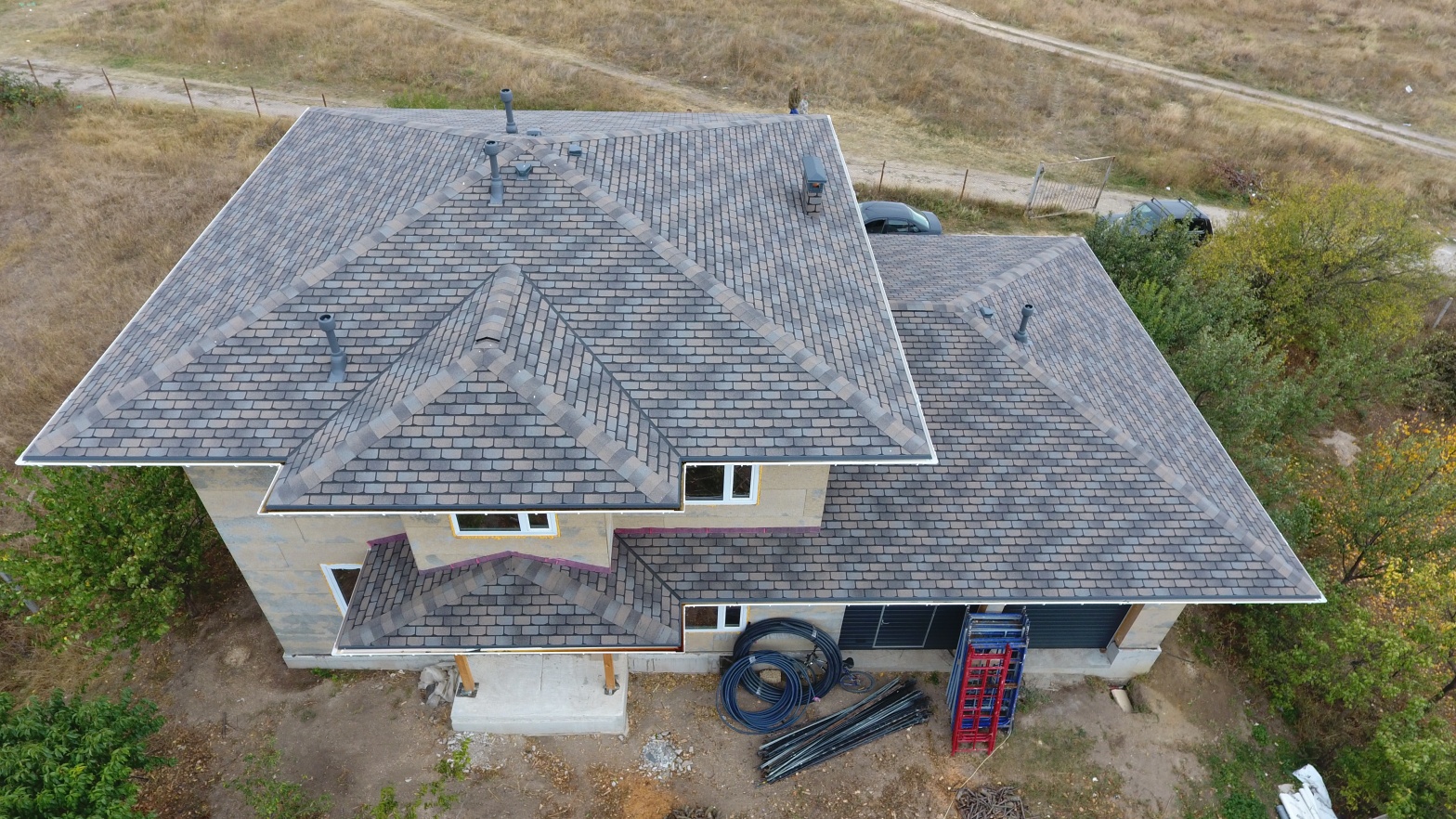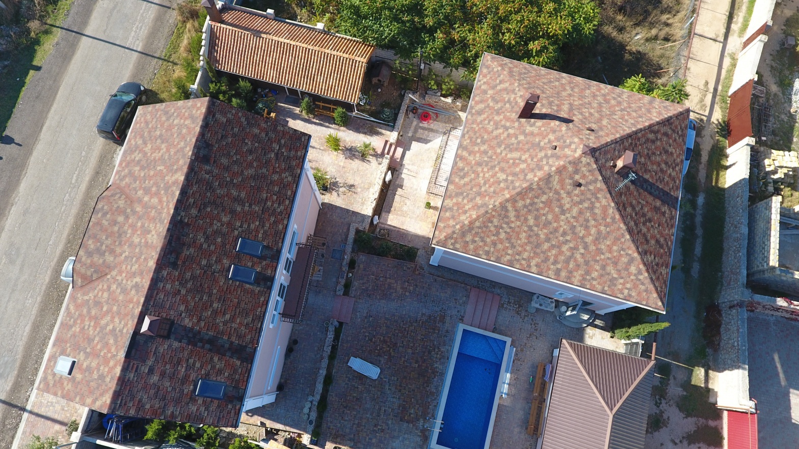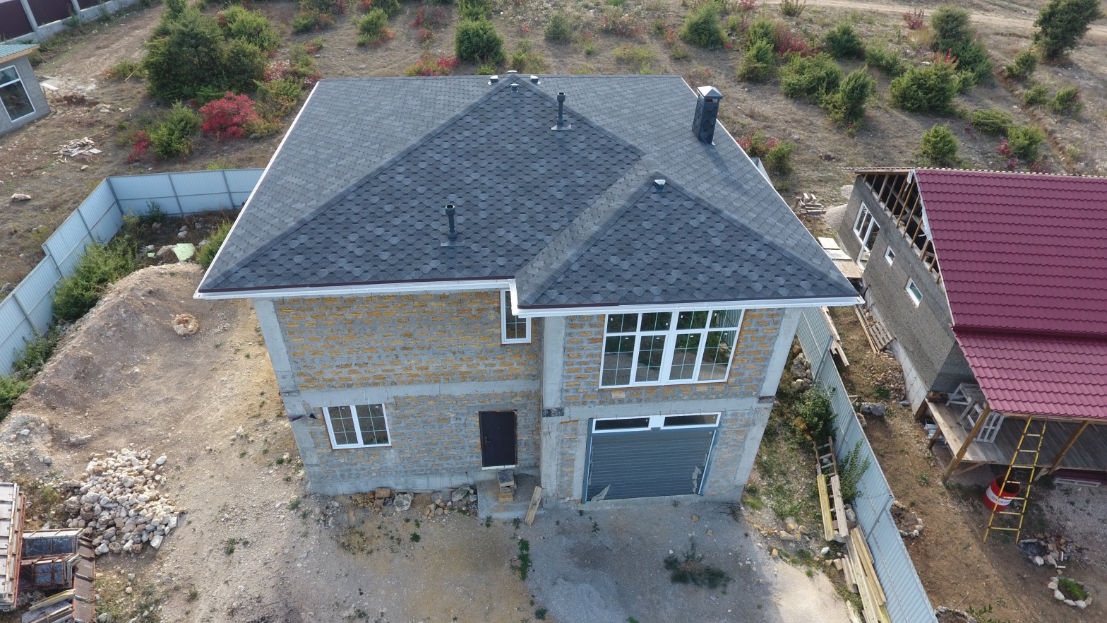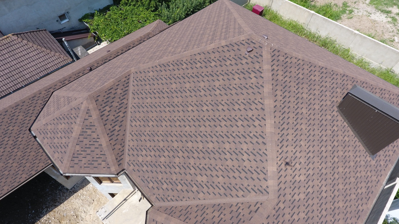 Комбинация гонтов гибкой черепицы серии PREMIUM из коллекции ЖЕНЕВА, цветов Изюм и Чили