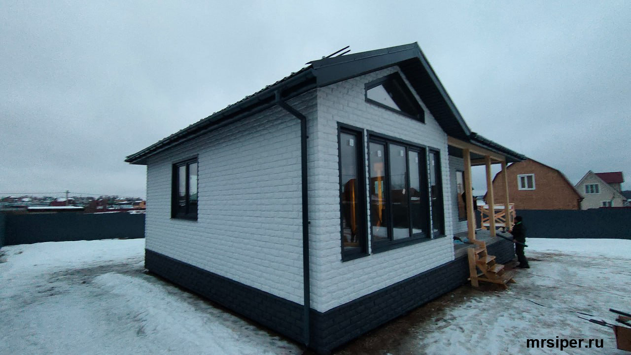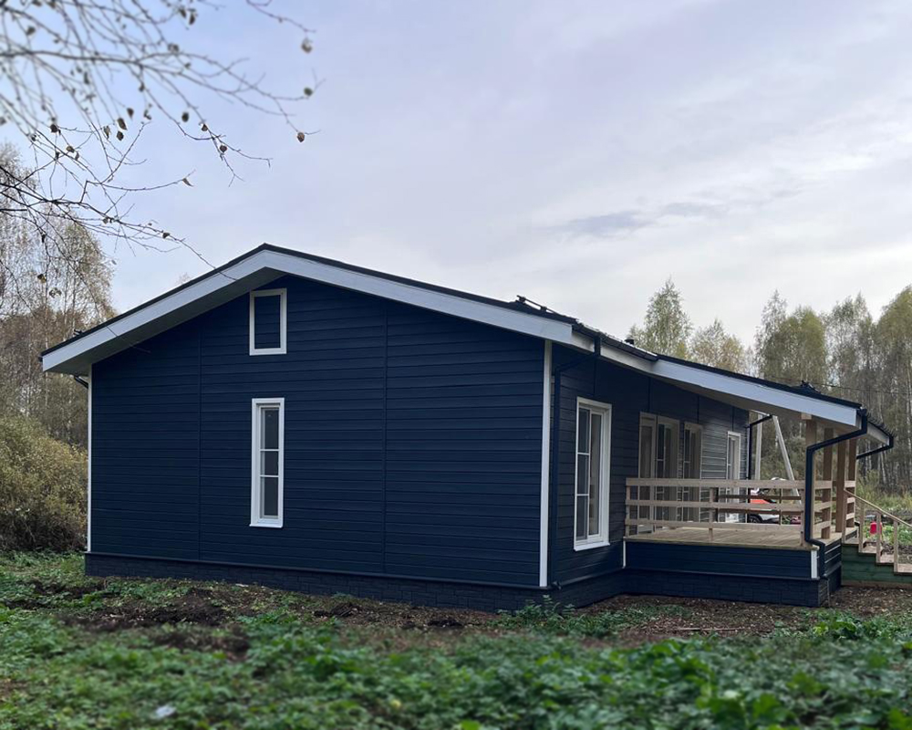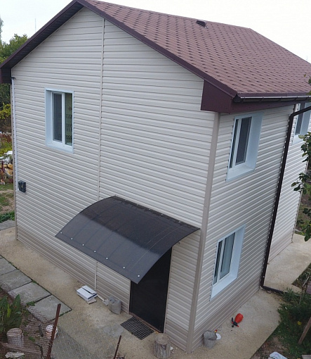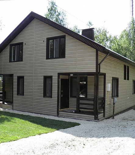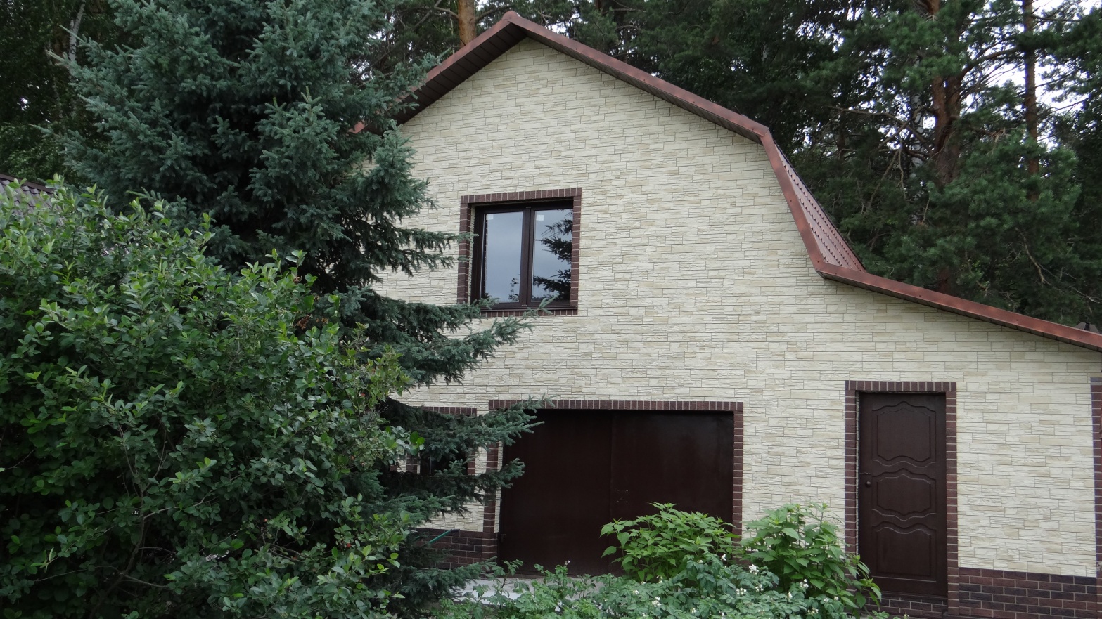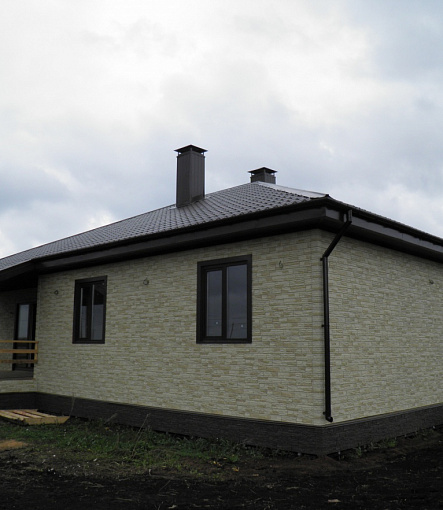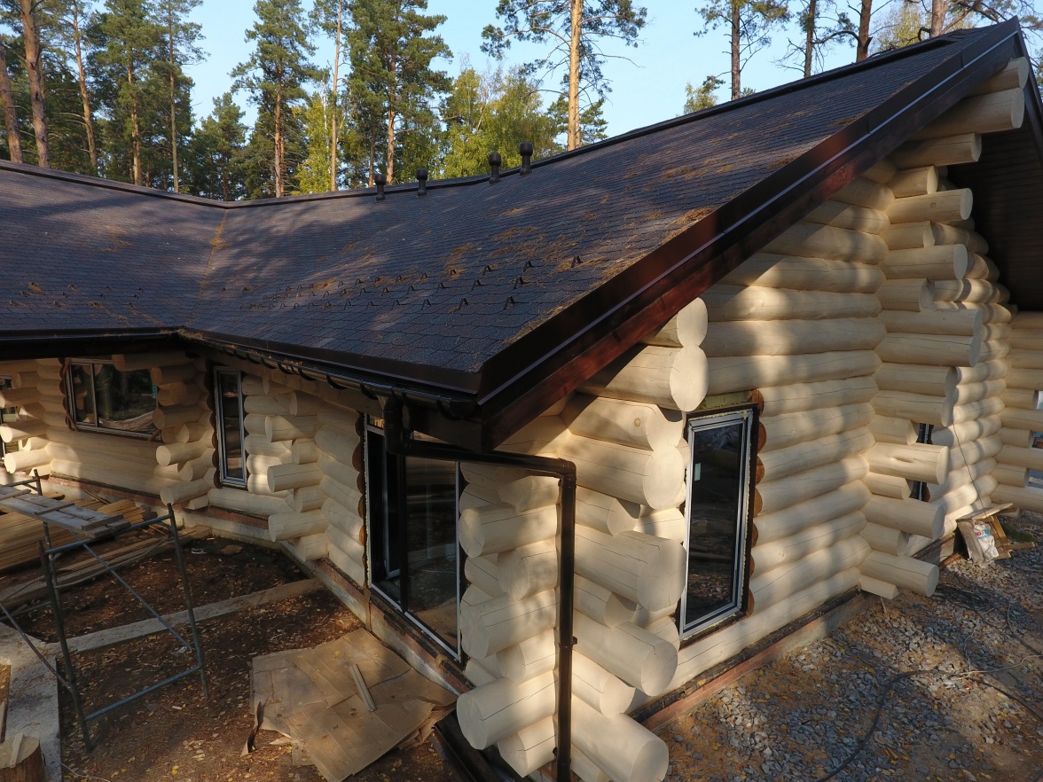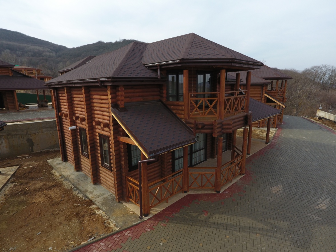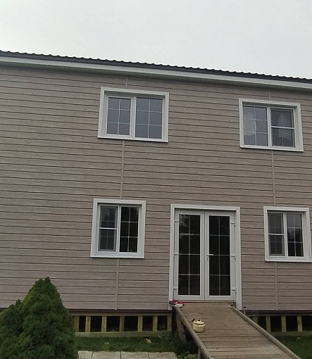 Сайдинг LUX Блок-хаус D4.7T Кедр, Фасадные панели Stein Темный орех, Водосток LUX Пломбир