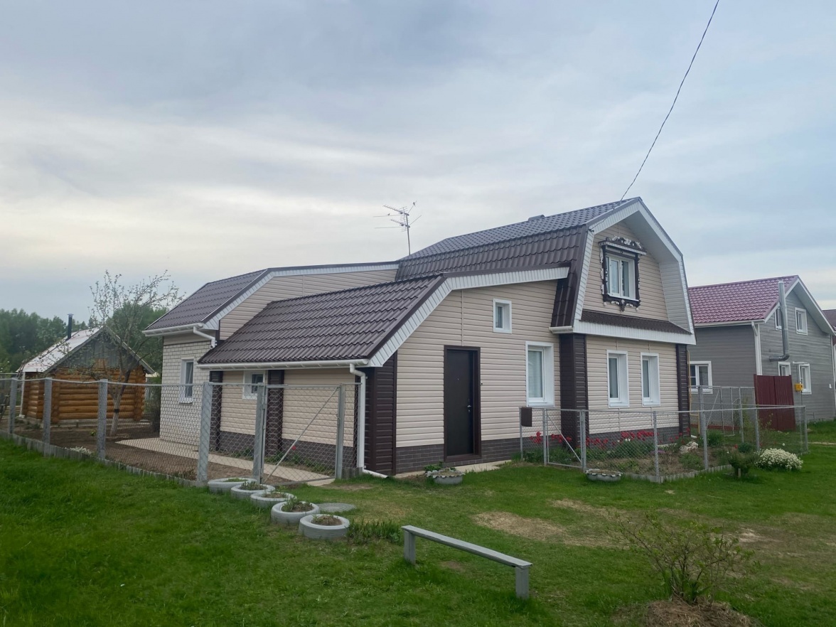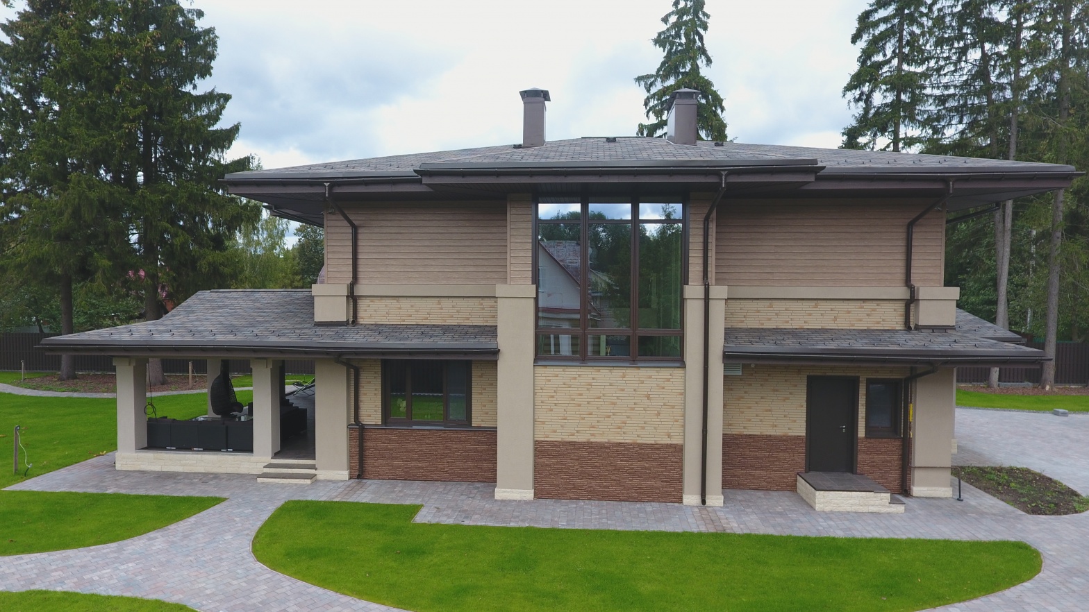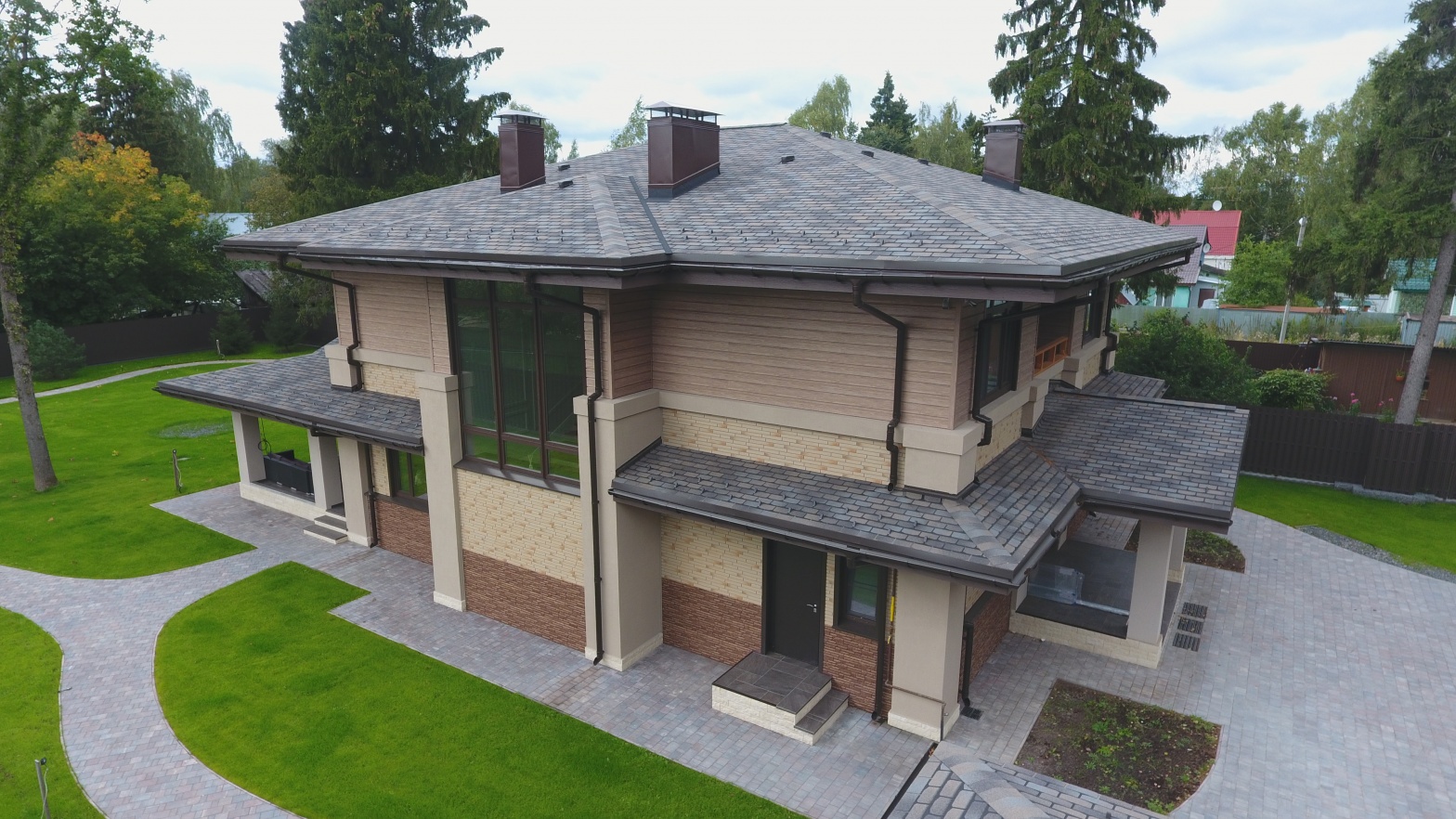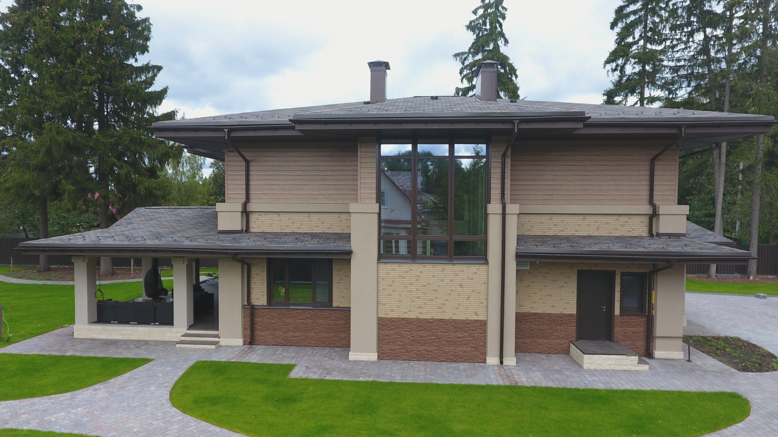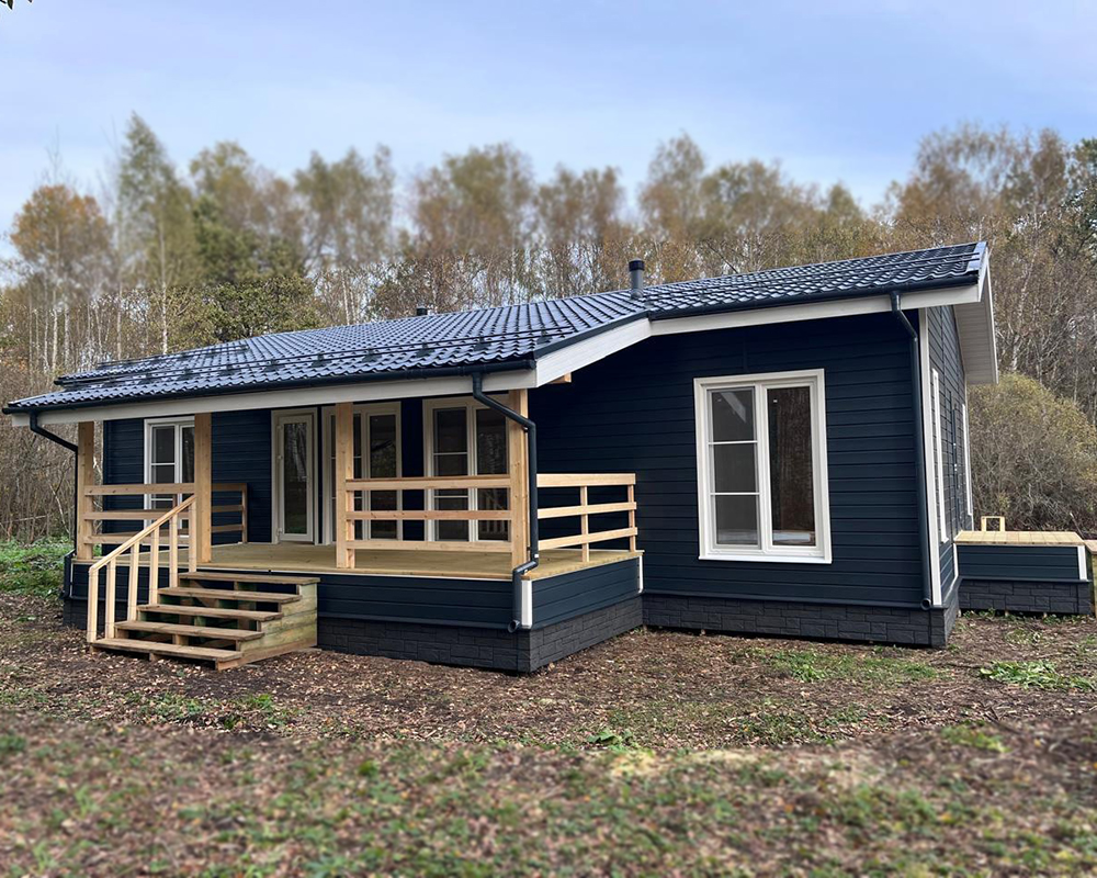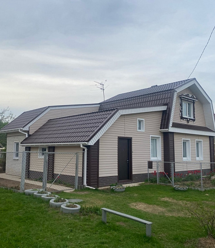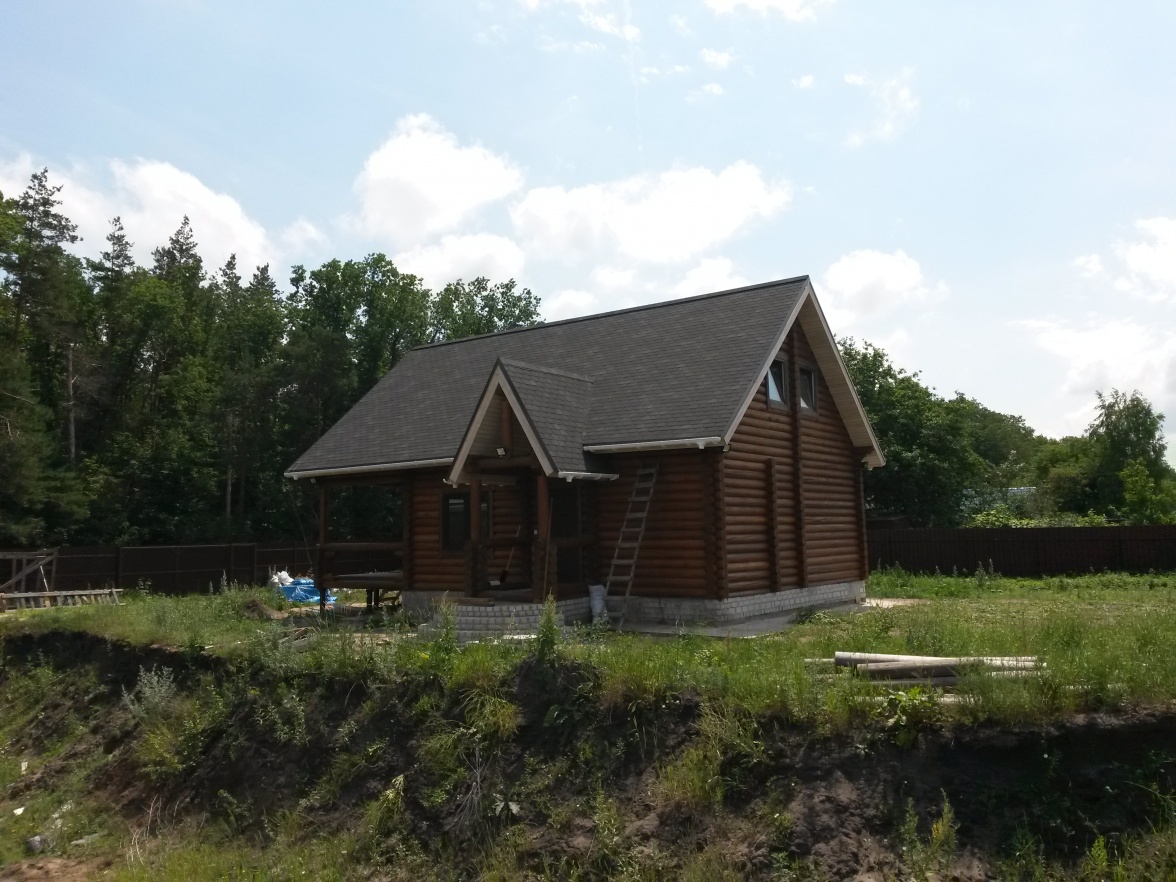 Сайдинг LUX Блок-хаус D4.7T Кедр, Фасадные панели Stein Темный орех, Водосток LUX Пломбир